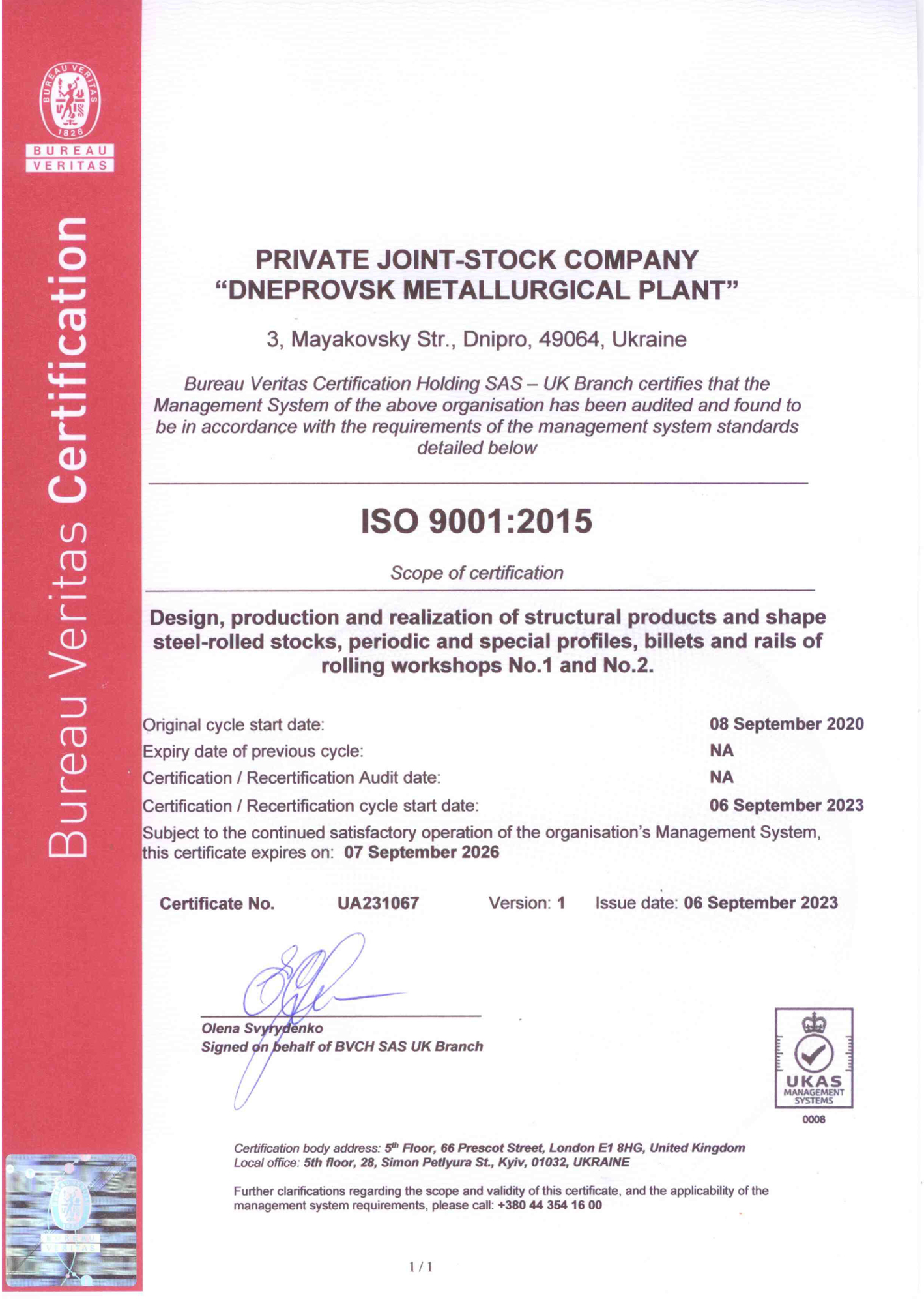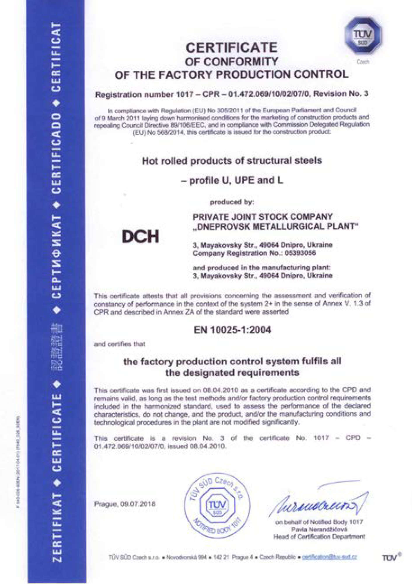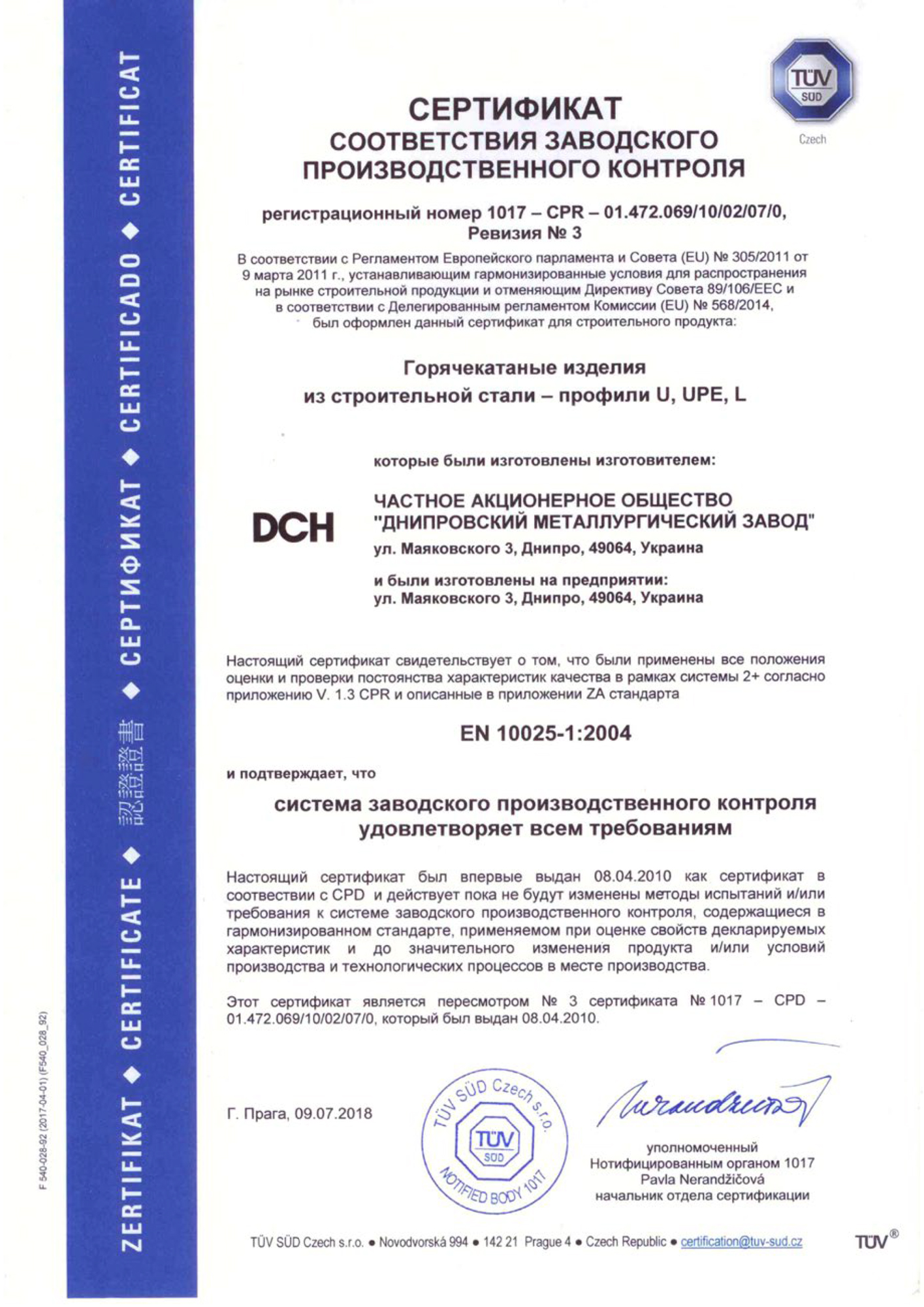 - Сертифікат відповідності заводського виробничого контролю EN 10025-1 (укр) (eng)